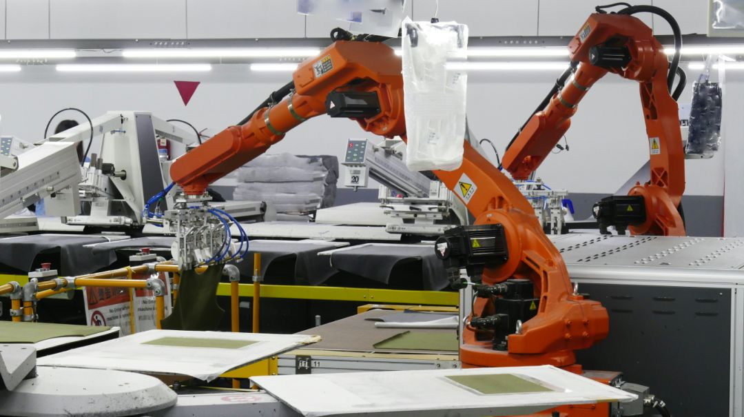 陳謙眾認(rèn)為鞋業(yè)制造未來(lái)將由“工業(yè)化”往“智能化”方向升級(jí)。傳統(tǒng)的工業(yè)制造實(shí)現(xiàn)了商品的批量生產(chǎn)和自動(dòng)生產(chǎn),但隨著人工智能視覺(jué)識(shí)別、自主學(xué)習(xí)等系列技術(shù)的成熟,未來(lái)的工業(yè)制造將實(shí)現(xiàn)“智能生產(chǎn)”和“智能管理”??梢詤⒖技徔椨』ㄐ袠I(yè),由國(guó)辰機(jī)器人自主研發(fā)的“布料取放機(jī)”采用了柔性布料夾取專利技術(shù),實(shí)現(xiàn)了從橢圓印花機(jī)臺(tái)板取布至烘箱鏈床自動(dòng)化生產(chǎn),“以機(jī)代人”。同樣具有借鑒意義的還有國(guó)辰機(jī)器人研發(fā)的3C全自動(dòng)裝配流水線,利用外觀視覺(jué)檢測(cè)、蜘蛛手分揀、自動(dòng)機(jī)械手等技術(shù),幫助眾多企業(yè)實(shí)現(xiàn)了產(chǎn)品的自動(dòng)化裝配和包裝,打造無(wú)人化車間;噴砂拋光自動(dòng)線則實(shí)現(xiàn)工件表面拋光打磨和噴砂處理的自動(dòng)化、一體化。反觀鞋業(yè)制造,應(yīng)當(dāng)深挖每一個(gè)生產(chǎn)環(huán)節(jié),思考“以機(jī)代人”的可能性,思考是否可以將其它行業(yè)的自動(dòng)化設(shè)備進(jìn)行改造以適用鞋業(yè)制造生產(chǎn)。